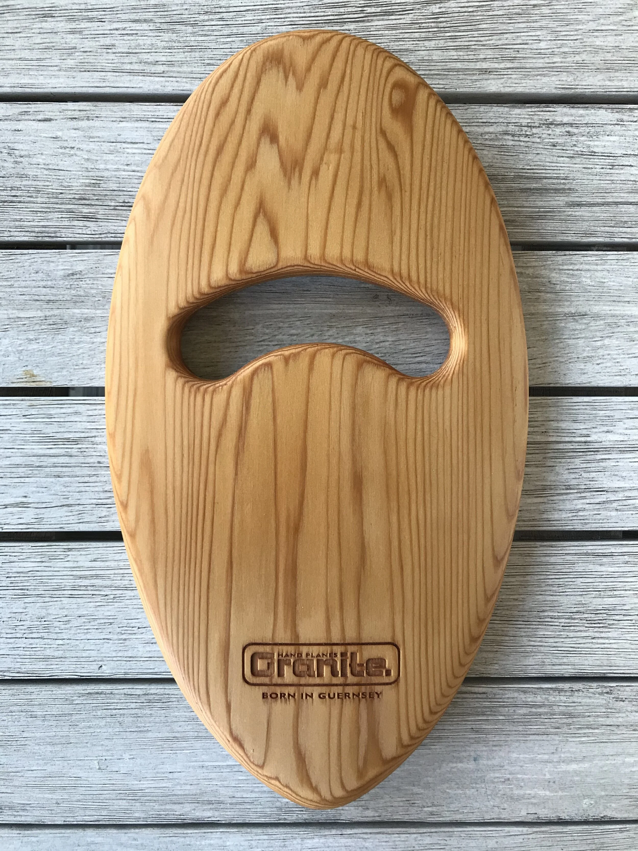 The Beanjar Hand-Plane has a pulled in pointed nose and subtle rocker to give a precise amount of control and reduce the splash in the waves. Fully rounded smooth rails at the front are blended into a hard edge at the rear for maximum water release. The larger planing surface under the hand provides maximum lift and the fully rounded tail gives smooth turns and hold in steeper, hollow wave faces. A full concave runs the length of the underside providing further lift and creating a fast hand-plane with lots of speed down the line. Hand crafted and finished to perfection like a tasty Guernsey Bean Jar the Granitesurf Beanjar Hand-Plane provides a warm, enriching connection with the sea and performs in all conditions.